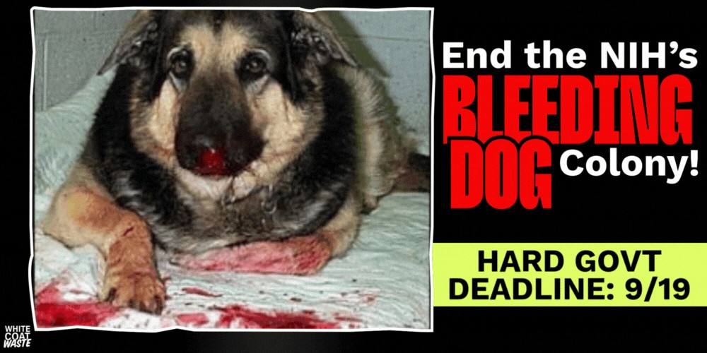 EXTREMELY URGENT: The NIH’s contract for the bleeding dog colony is up for renewal. NIH has defended this lab. Now it may pay them even more money! Rush a rapid response donation in the next 24 hours to help: